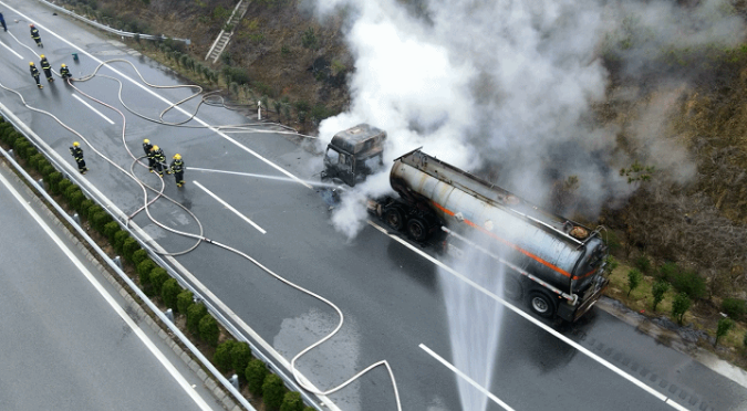 1月12日16時10分許,在寧定高速于都段,一輛裝載35噸鹽酸的槽罐車在行駛途中駕駛室突然著火。 消防救援人員到場后發(fā)現(xiàn)槽罐車駕駛室呈猛烈燃燒狀態(tài),在對現(xiàn)場做好警戒的同時,消防救援人員立即對火勢進行撲救。 15分鐘后,明火被成功撲滅,隨后,消防救援人員繼續(xù)對車輛罐體進行冷卻降溫。 22時30分,在多部門的共同努力下槽罐車內(nèi)鹽酸被成功轉移。 據(jù)了解,該車輛是從福建開往龍南,途經(jīng)于都段時駕駛室突然冒煙起火,駕駛員使用滅火器撲救未果后,便立即撥打119報警求助。 溫馨提醒:危險化學品具有爆炸、易燃、毒害、腐蝕和放射性等危險性存在著較大的風險和事故隱患。