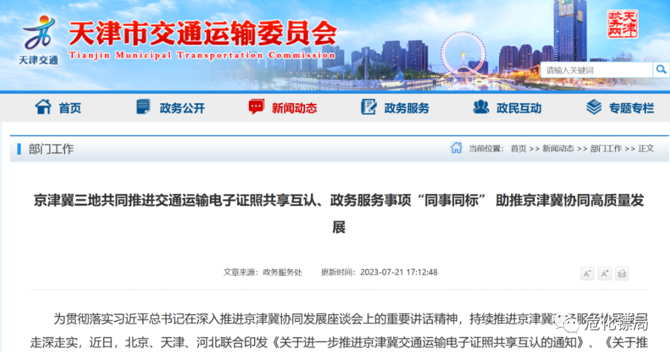 日前,北京市、天津市、河北省聯(lián)合印發(fā)《關(guān)于進(jìn)一步推進(jìn)京津冀交通運(yùn)輸電子證照共享互認(rèn)的通知》《關(guān)于推出京津冀交通運(yùn)輸領(lǐng)域首批“同事同標(biāo)”事項(xiàng)的通知》。目前,經(jīng)三地核發(fā)的五大類電子證照已實(shí)現(xiàn)三地互認(rèn): 1、道路運(yùn)輸經(jīng)營(yíng)許可證 2、道路運(yùn)輸證 3、道路運(yùn)輸從業(yè)人員從業(yè)資格證 4、道路危險(xiǎn)貨物運(yùn)輸許可證 5、放射性物品道路運(yùn)輸許可證