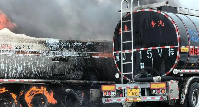 4月19日上午,天津市濱海新區(qū)秦濱高速臨港收費(fèi)站出口有兩輛罐車發(fā)生交通事故后起火。經(jīng)偵察,現(xiàn)場(chǎng)為一輛載有潤(rùn)滑油的罐車與一輛載有柴油的罐車相撞,造成兩輛罐車起火。
