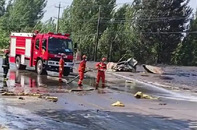 5月13日,山東泰安市泰山區(qū)化馬灣鄉(xiāng)南洪河村一村民向記者報(bào)料,一輛載有化學(xué)品的罐車在該村發(fā)生爆炸泄漏,不明化學(xué)品污染了村里的土地和河道。 事發(fā)時(shí)間為5月10日,南洪河村一輛大罐車突發(fā)爆炸,造成罐內(nèi)的液體向外泄漏,不斷散發(fā)出刺鼻的味道,車后大片區(qū)域被液體浸染,多名消防員手持水管正在對(duì)路面進(jìn)行清洗。視頻顯示,耕地中的土壤也被液體浸染,農(nóng)作物枝葉上可見(jiàn)明顯黑色顆粒。 南洪河村村民屈先生(化姓)告訴記者,大貨車開(kāi)始是氣體泄漏,后來(lái)整個(gè)罐體破裂,不明液體大量泄漏,污染了村中的河道和耕地。事發(fā)后,消防員到場(chǎng)對(duì)現(xiàn)場(chǎng)道路進(jìn)行了清洗,生態(tài)環(huán)境局對(duì)空氣做了檢測(cè),結(jié)果顯示空氣中含有致癌物質(zhì)。但被污染的耕地和水源怎么樣?至今無(wú)人給村民明確答復(fù)。 5月13日,記者致電化馬灣鄉(xiāng)人民政府,工作人員表示,事發(fā)當(dāng)天,泰安市和泰山區(qū)兩級(jí)應(yīng)急管理局和生態(tài)環(huán)境局等多部門都前往現(xiàn)場(chǎng)進(jìn)行了處置,第一時(shí)間安排事發(fā)地附近的數(shù)十名村民去醫(yī)院進(jìn)行了體檢,檢查結(jié)果是村民均無(wú)礙。此外,相關(guān)部門還把事發(fā)地的土壤、水源和氣體也都拿去進(jìn)行了化驗(yàn),事發(fā)當(dāng)天的數(shù)據(jù)確實(shí)稍微有些異常,但第二天再去化驗(yàn)時(shí),所有的數(shù)據(jù)均已恢復(fù)正常,目前善后工作仍在進(jìn)行。 上述工作人員還介紹,載有不明化學(xué)液體的車輛當(dāng)時(shí)停在路邊,駕駛員離開(kāi)去吃飯了,先是車上罐內(nèi)氣體發(fā)生泄漏,強(qiáng)大的氣流將罐體撕開(kāi)一道口子,導(dǎo)致罐內(nèi)液體泄漏。 泰山區(qū)生態(tài)環(huán)境局工作人員表示,他們事發(fā)當(dāng)天下午現(xiàn)場(chǎng)對(duì)空氣、土壤和水源進(jìn)行了取樣檢測(cè),最新的檢測(cè)結(jié)果顯示,空氣已恢復(fù)正常,土壤準(zhǔn)備按照有害物質(zhì)處理。