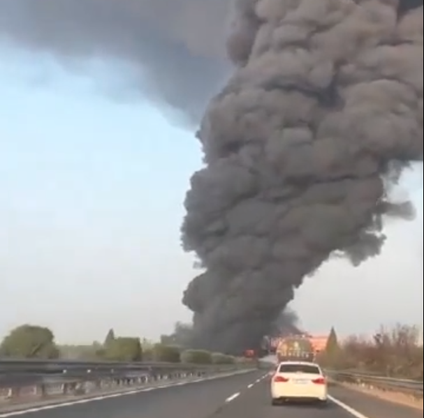 10月8日上午,有網(wǎng)民發(fā)布視頻,稱在山東聊城冠縣高速路段附近發(fā)生疑似油罐車追尾事故。視頻顯示,現(xiàn)場因交通事故引發(fā)火情,滾滾黑煙不斷向上空彌漫,距事故地點數(shù)公里外仍能看見。 10月8日中午,記者就事故情況聯(lián)系到冠縣應急管理局,一工作人員稱事故發(fā)生后工作人員已第一時間趕赴現(xiàn)場,“它(事故)是發(fā)生在冠縣高速東出口向西一公里左右的位置!痹摴ぷ魅藛T也向記者補充道,“我們了解到的情況是沒有人員傷亡!倍鴮τ谝曨l中提到的油罐車追尾,該工作人員則回復稱“可能是貨車(追尾)。”
