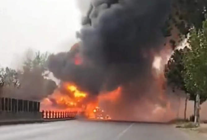 8日上午,記者從社交媒體平臺(tái)上看到,道路上黑煙滾滾,火光沖天,火勢(shì)出現(xiàn)蔓延,現(xiàn)場情形十分危急,附近還有路人遠(yuǎn)遠(yuǎn)圍觀不敢靠近。