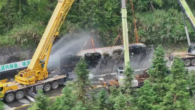 6月3日凌晨5時許,湖南藍(lán)山縣一輛裝載液化石油氣的重型半掛牽引車在行駛至G537線南風(fēng)坳路段時發(fā)生側(cè)翻,情況非常危險。事故現(xiàn)場,在G537線南風(fēng)坳路段,一輛湘M牌照的槽罐車側(cè)翻于交通干道彎道處,罐體內(nèi)裝載約有25噸液化石油氣,一旦罐體發(fā)生泄露,將威脅到周圍幾公里內(nèi)群眾的生命安全。 根據(jù)現(xiàn)場情況,立即成立了現(xiàn)場指揮部,劃定警戒區(qū)域,對警戒范圍內(nèi)的人員進(jìn)行疏散,并對G537所城至南風(fēng)坳路段實施交通管制,保障救援通道暢通。中午12時10分許,在確,F(xiàn)場無氣體泄漏后,吊裝作業(yè)組對槽罐車實施扶正作業(yè)。經(jīng)過13個小時全力救援和處置,順利完成了槽罐車側(cè)翻現(xiàn)場清理和安全評估工作,G537線南風(fēng)坳路段也于19時恢復(fù)通行。截至4日凌晨2點,槽罐車被安全轉(zhuǎn)移至所城液化氣站,并將罐體內(nèi)的液化氣安全卸載,險情得到解除。