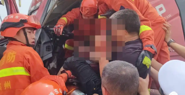 8月7日13時32分,在濱州鄒平市魏橋鎮(zhèn)金橋大道發(fā)生一起油罐車相撞事故,情況緊急,急需救援。消防救援人員到達(dá)現(xiàn)場后看到,事故發(fā)生在一個十字路口,由南向北行駛的油罐車撞上由西向東正常行駛的半掛車車廂,導(dǎo)致半掛車車廂側(cè)翻,車廂內(nèi)玉米傾瀉一地,油罐車駕駛室嚴(yán)重變形,駕駛員頭部鮮血淋漓,雙腿被卡在駕駛室內(nèi)無法脫困。 消防救援人員首先利用液壓破拆工具組對駕駛室車門進(jìn)行破拆,仔細(xì)觀察駕駛員雙腿被卡情況,并詢問是否有其他受傷部位。隨即消防救援人員利用液壓擴(kuò)張器對變形駕駛室進(jìn)行擴(kuò)張,增大被困駕駛員腿部救援空間,同時車內(nèi)消防救援人員扶住駕駛員身體,并不斷安慰被困人員情緒。 經(jīng)過10分鐘的緊張救援,消防救援人員將司機(jī)被卡的雙腿成功抽出,抬上救護(hù)車送往醫(yī)院。