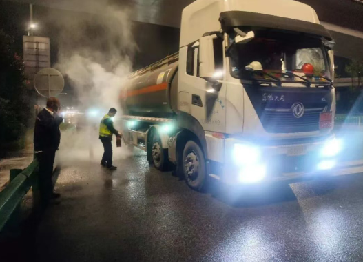 危險(xiǎn)品罐車起火10月12日晚20時(shí),陜西西安未央北收費(fèi)站入口一輛陜B牌照的重型油罐車駛?cè)胲嚨罆r(shí),后方輪胎猛地竄出黑煙,隨即燃起明火。火借風(fēng)勢,隨著彌漫的煙霧迅速蔓延,而罐體內(nèi)滿載30余噸油料,更讓現(xiàn)場籠罩在巨大的危險(xiǎn)之中,情況十分緊急。工作人員發(fā)現(xiàn)后,第一時(shí)間提起滅火器,飛奔沖向煙霧翻騰的罐車。經(jīng)過現(xiàn)場工作人員和司機(jī)的共同努力,明火快速被撲滅,其余車輛有序駛離。